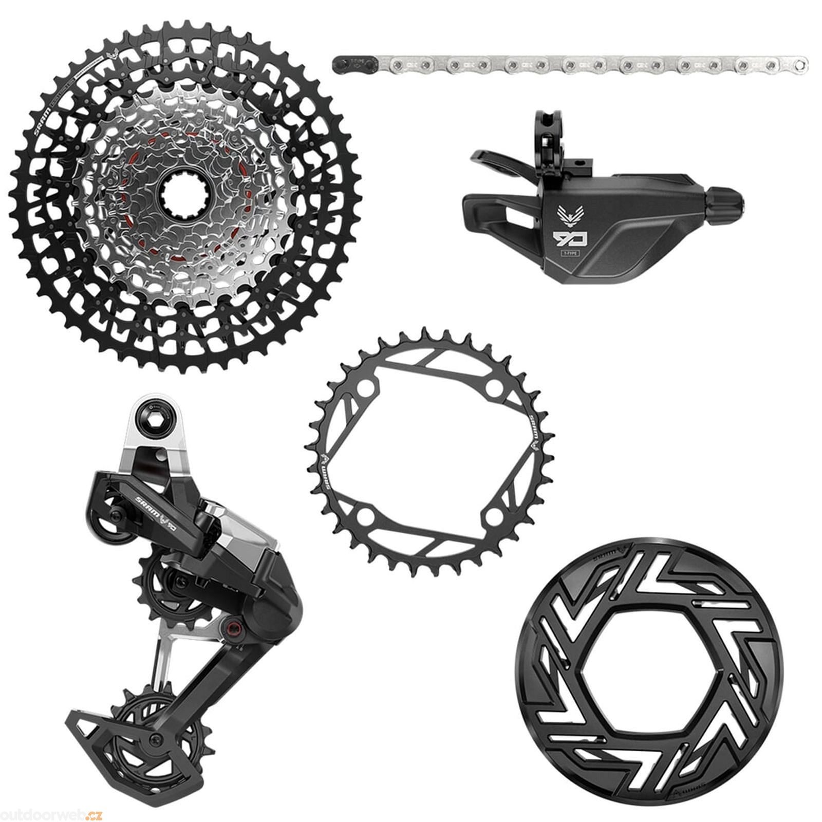 Součást balení: Přehazovačka, řadící páčka Single Click, převodník BCD 104 34T s chráničem, řetěz GX T-Type 126 článků, kazeta XS-1275 10-52T