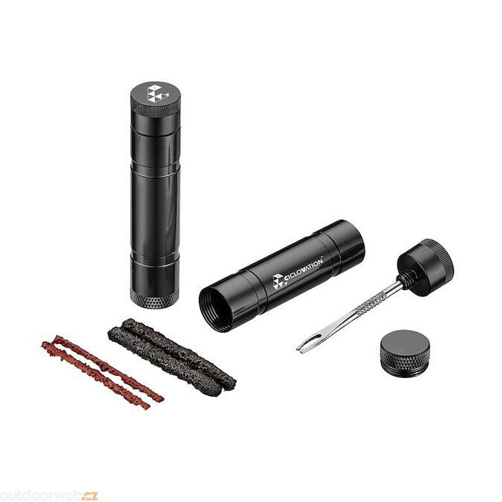 Kit na opravu bezdušových kol obsahující nezbytné nářadí, aby jste mohli bezproblémově pokračovat v jízdě. Obal je lehký, kompaktní a odolný, tvořený z hliníku. Zaváděcí jehla má integrovanou rukojeť se zoubkováním pro lepší držení, nástroj pro vkládání knotu a 4 knoty pro různé velikosti kol.