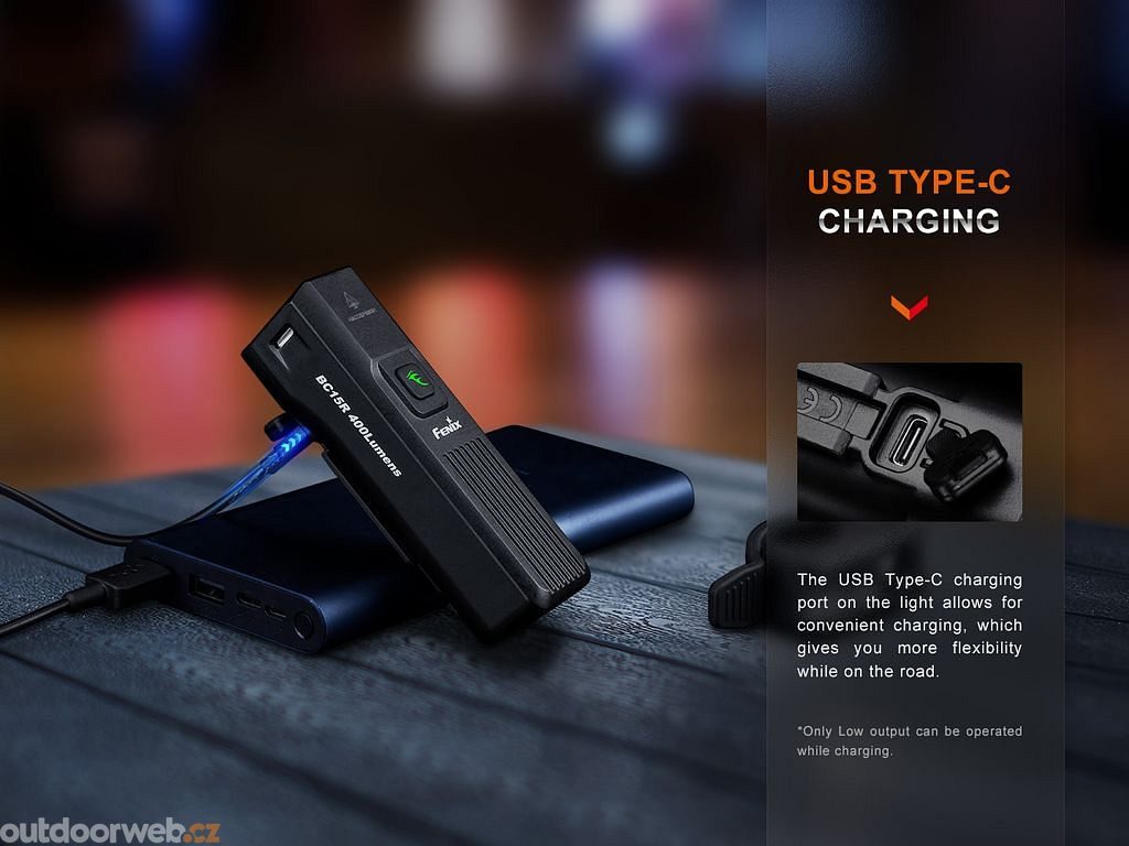 - Během nabíjení lze svítilnu v nouzi používat, dostupný je jen nízký režim 50 lumenů. Doba nabíjení se však prodlouží.