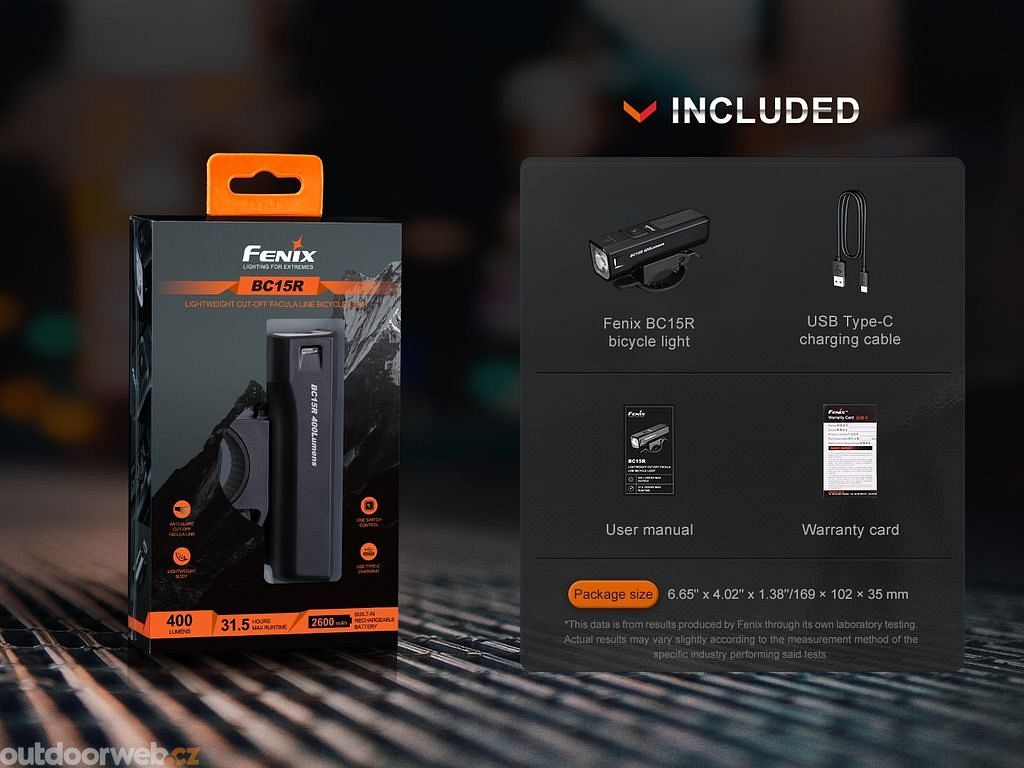 Nezáleží na tom, jestli se chystáte na trénink nebo do práce, s cyklosvítilnou Fenix BC15R budete v bezpečí a vždy skvěle vidět. Všechny vlastnosti této svítilny jsou testovány dle přísných ANSI/NEMA FL 1-2009 standardů, takže můžete mít důvěru v její výkon a spolehlivost. Nenechte nic náhodě a osvětlete si cestu kvalitním, spolehlivým a dlouhotrvajícím světlem Fenix BC15R.