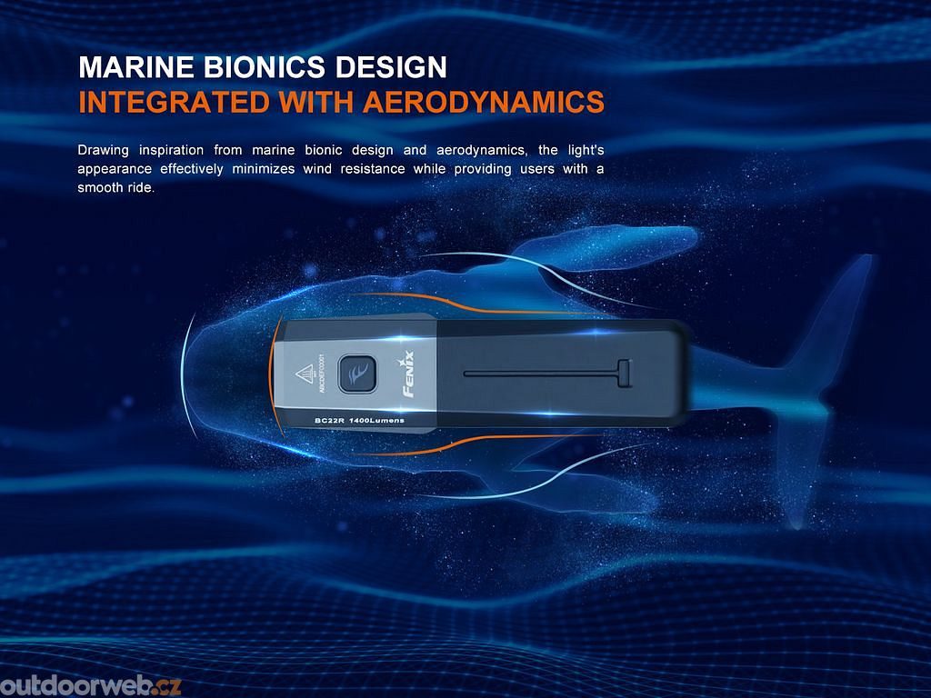 Výkonná nabíjecí cyklosvítilna Fenix BC22R přináší světelný tok až 1400 lumenů (ANSI) s dosvitem až 156 metrů. K napájení slouží vyměnitelný Li-ion akumulátor typu 18650 o kapacitě 3400 mAh, který je součástí balení a nabíjí se přes USB-C konektor přímo ve svítilně.