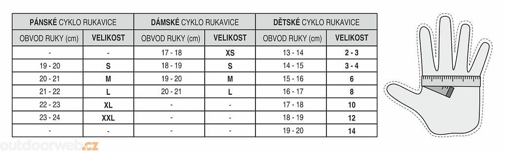 - Konečky prstů s protiskluzovými plochami zlepšují držení řidítek, brzd, holí.