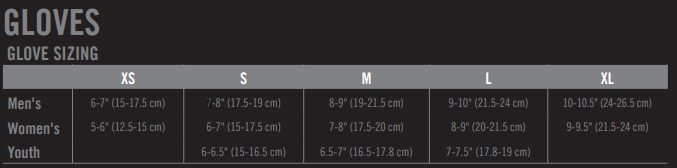 | Obvod dlaně v cm | 15-17,5 | 17,5-19 | 19-21,5 | 21,5-24 | 24-26,5 |