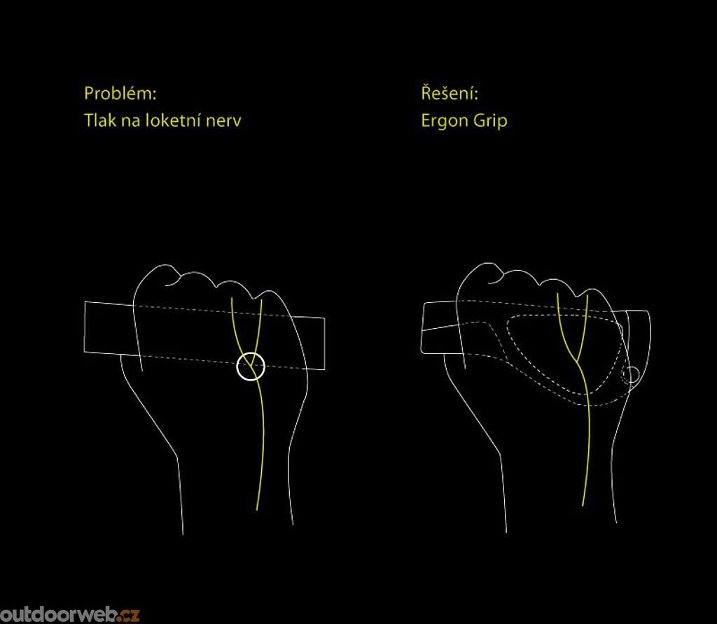 Objímka zafixuje grip na místě a zabraňuje jeho pohybu při jízdě. Gripy účinně působí proti znecitlivění rukou, bolestem prstů a únavě předloktí. Speciální certifikovaný materiál vyvinutý v Německu zaručuje špičkovou kvalitu. Gripy jsou kompatibilní s karbonovými řídítky.