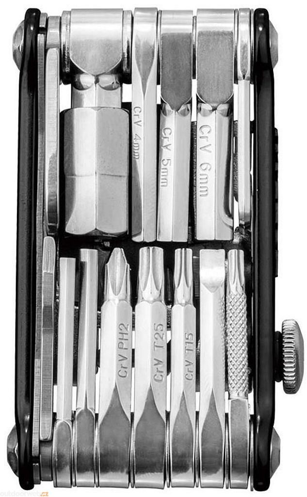 Vysoce kvalitní a přesné mini nářadí s 30 funkcemi a integrovaným nářadím pro opravu bezdušových kol, to vše v elegantním těle z kovaného hliníku. Integrovaná nýtovačka řetězu s vestavěným nástrojem master link. Ideální multifunkční nářadí pro jakoukoli vyjížďku.