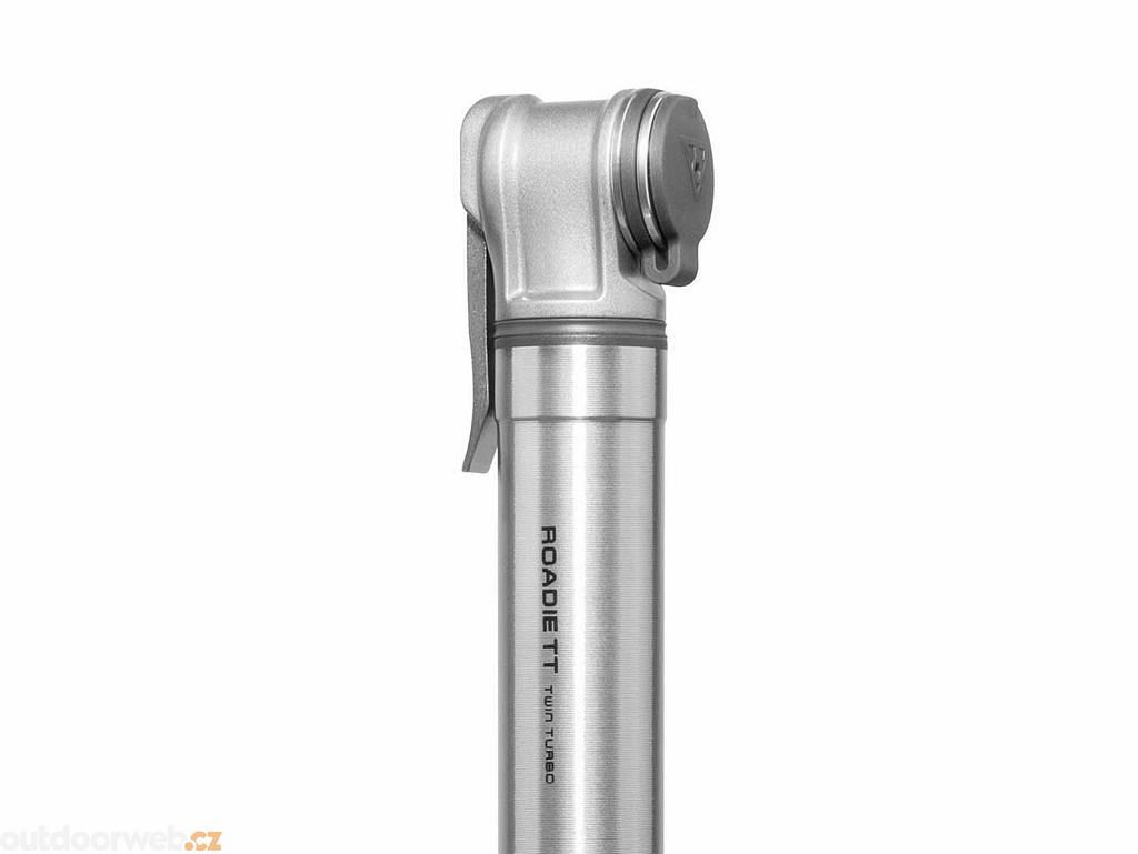 Roadie TT je celokovová kapesní mini pumpa s technologií Twin Turbo. Díky tomu se přenáší větší objem vzduchu z vnější komory s větším průměrem do vnitřní komory s menším průměrem, což zvyšuje efektivitu huštění při vyšších tlacích až o 50% . Integrovaná protiprachová hlavice udržuje hlavici pumpy čistou, zatímco upínací páčka zajišťuje dokonalé utěsnění.