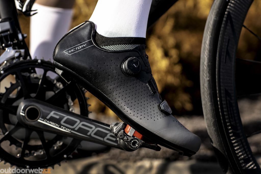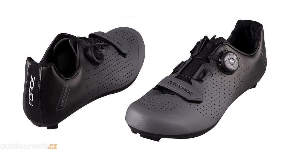 Střední třída silničních treter Force Victory se zapínáním na pásek a atop kolečko s podešví z nylonového kompozitu je ideální pro jezdce, kteří hledají slušné tretry za dobrý peníz.
