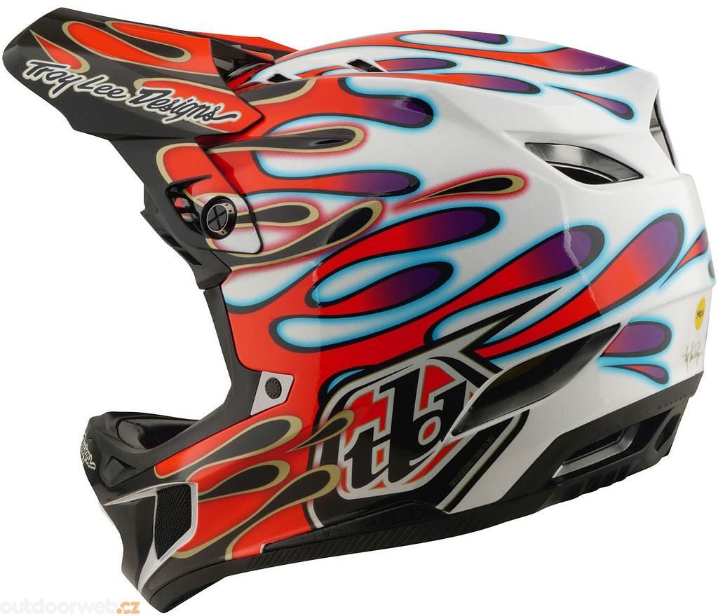 TROY LEE DESIGNS D4 COMPOSITE MIPS OVERSPRAY WHITE / RED