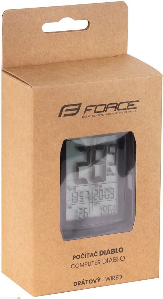 FORCE DIABLO je drátový cyklopočítač, který spojuje přesnost, odolnost a funkčnost do jednoho kompaktního zařízení. Díky voděodolnému provedení (IPX6) a jednoduché montáži na řídítka nebo představec se stane nepostradatelným parťákem při každodenním tréninku i víkendových výletech.