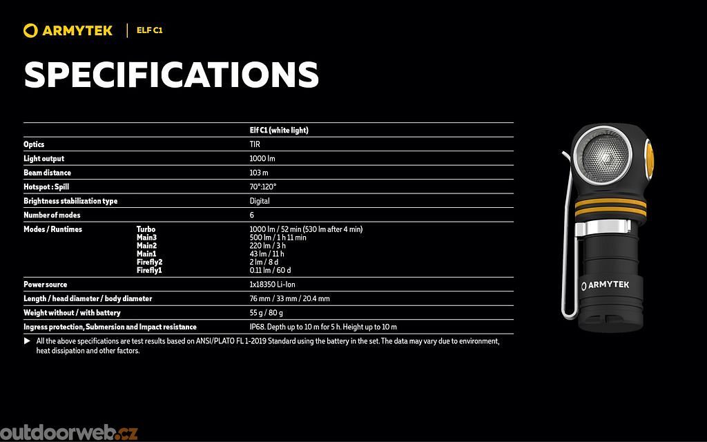 Kanadská značka Armytek vyrábí taktické svítilny pro profesionály, záchranáře i outdoorové nadšence. Od roku 2007 si získala důvěru díky extrémní odolnosti – certifikace IP68 potvrzuje voděodolnost a nárazuvzdornost. Robustní tubus z leteckého hliníku umožňuje montáž na zbraň.