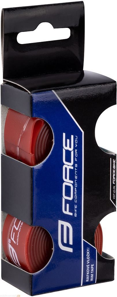 Červená ráfková vložka FORCE pro 29" kola v praktické krabičce obsahující 2 kusy, vyrobená z pružného PVC materiálu se šířkou 19 mm.