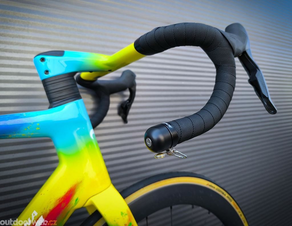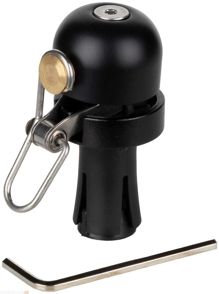 Kompaktní černý zvonek o průměru 31 mm do silničních řídítek, který nahrazuje standardní zátku, vyrábí výrazný zvuk o síle 80 dB a je vyroben z odolné kombinace oceli, mosazi a plastu.