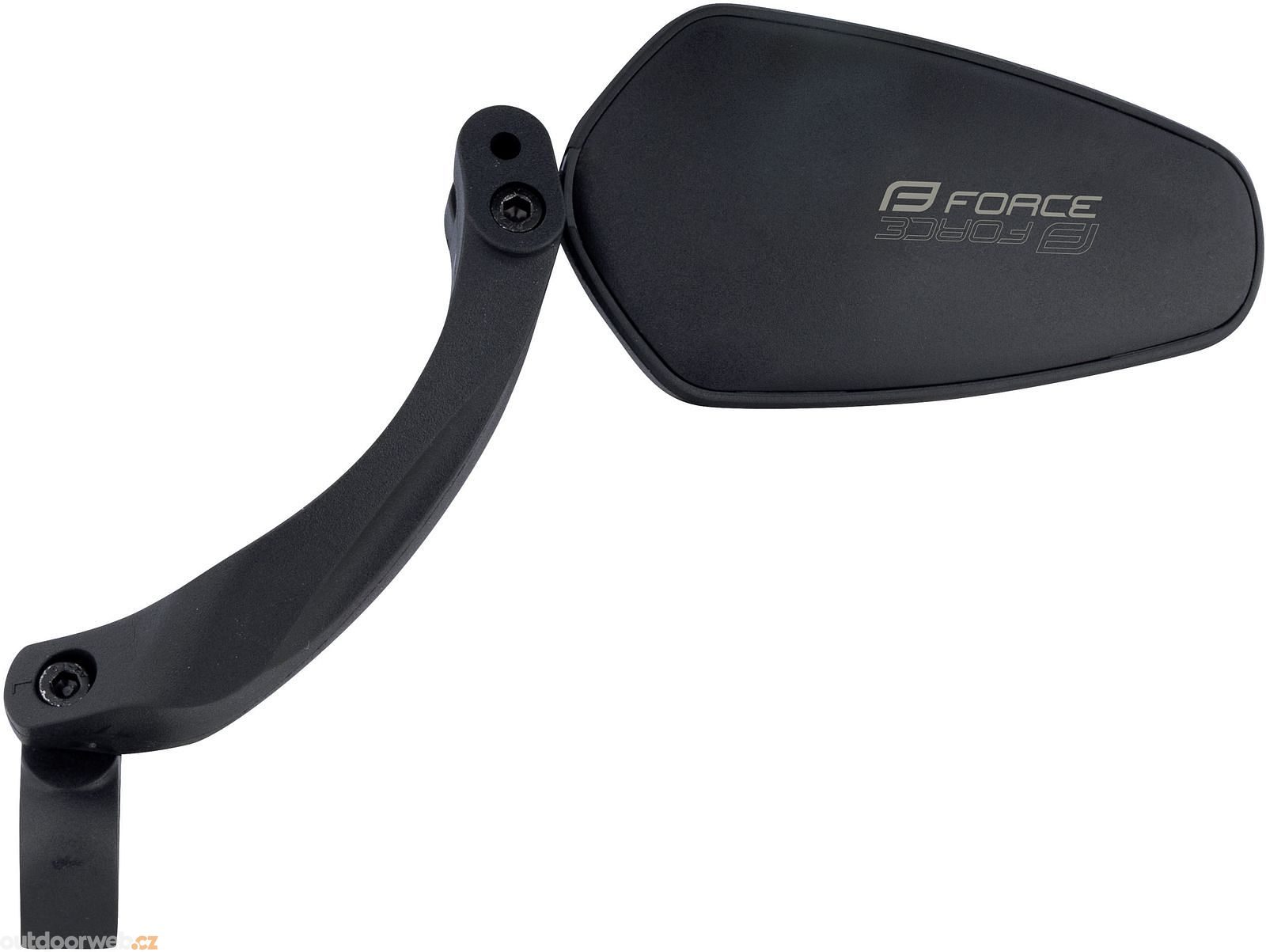 Levé zpětné zrcátko značky FORCE na řídítka s pětiúhelníkovým bezpečnostním zrcátkem zvyšuje bezpečnost při jízdě a umožňuje snadnou instalaci a nastavení úhlu.