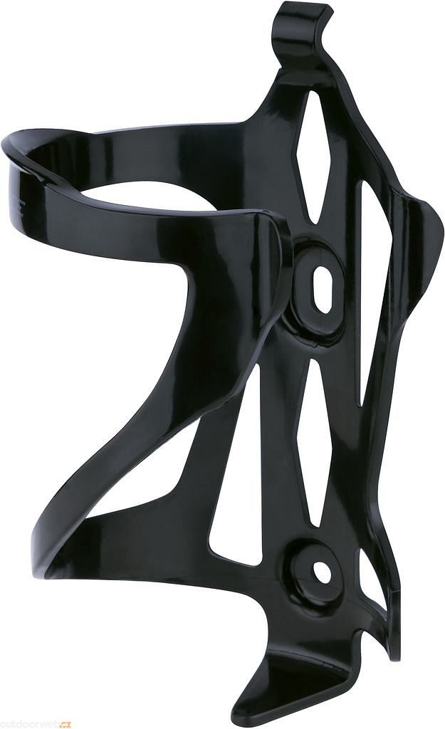 FREYA je plastový černý košík na láhve s lesklým černým povrchem a šedým potiskem, opatřený šroubky a bočním výsunem.