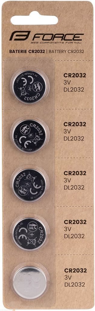Sada 5 kusů knoflíkových baterií FORCE CR2032 3V určená pro různé elektronické zařízení jako počítače, pulzmetry nebo hrudní pásy.
