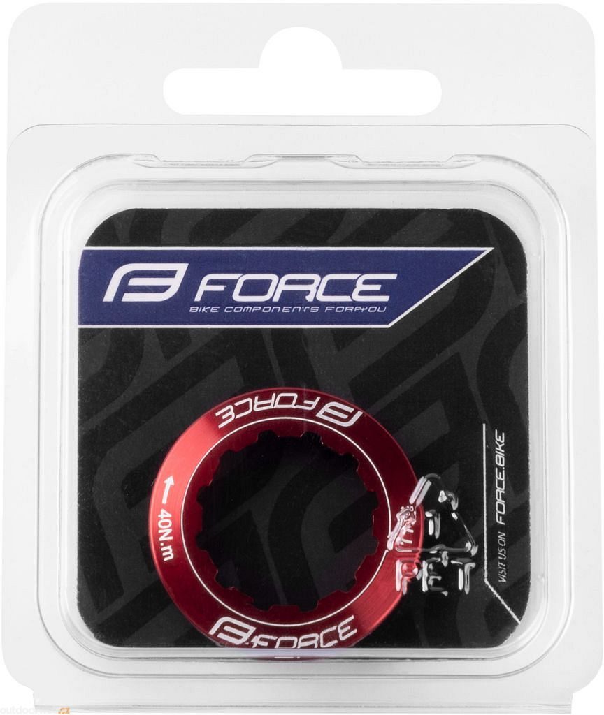 Červená pojistná matice na kazetu SHIMANO 11z určená pro pastorek s 11 zuby, vyrobená z hliníku s červeným eloxem a bílým logem FORCE, balena v originální krabičce.