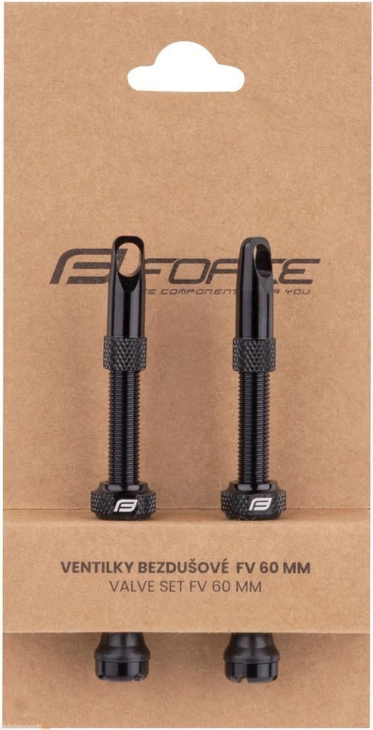 Sada obsahuje 2 hliníkové galuskové ventilky (FV) s těsnícím kroužkem a ráfkovou matkou určené pro bezdušový systém, doplněné o čepičku sloužící jako klíč na vložku, 2 náhradní těsnící kroužky a 2 náhradní hranatá patka ventilku, vše baleno v blistru FORCE.