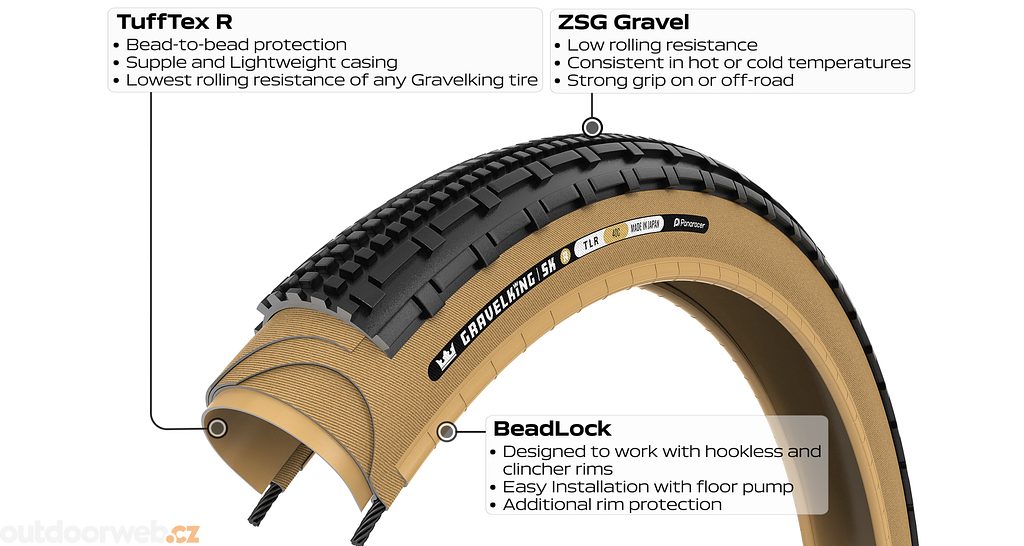 Zcela nový plášť GravelKing SK R s pokročilou konstrukční technologii se stává nejrychlejší a nejpoddajnější verzí GravelKing SK. Agresivnější vzorek, který je navržený pro ježdění v těžších podmínkách, na nezpevněných cestách a nebojí se ani bláta. Ideální volba, když nechcete řešit zda je sucho, mokro, či kterou cestou se vydat.