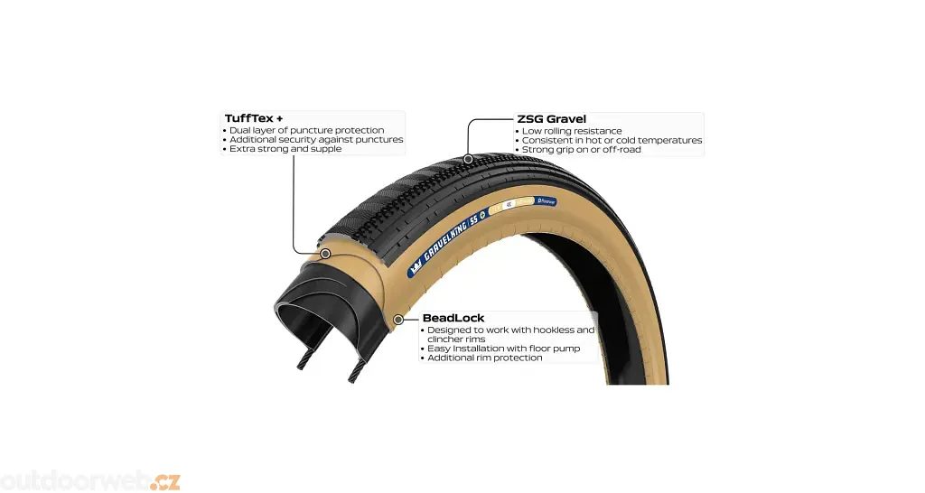 Díky unikátní směsi ZSG Gravel a vylepšené konstrukci dosahuje GravelKing SS+ vynikající stability a trakce v různých terénech, což vám umožní jet rychle a bezpečně.
