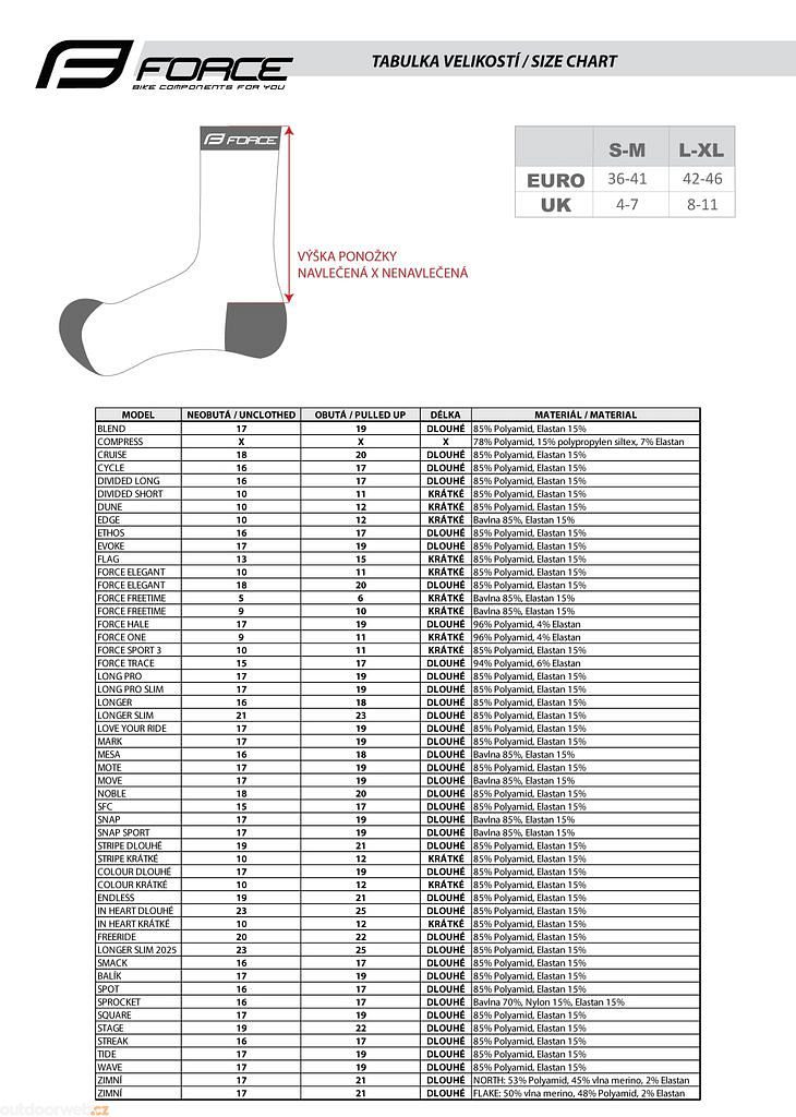 Cyklistická značka FORCE je na trhu již od roku 1991. FORCE nabízí širokou škálu produktů, cyklistické komponenty, doplňky a oblečení. Celý katalog značky obsahuje téměř 2000 položek. Cyklistické doplňky a vybavení FORCE jsou proslulé kombinací kvality a dobré ceny.