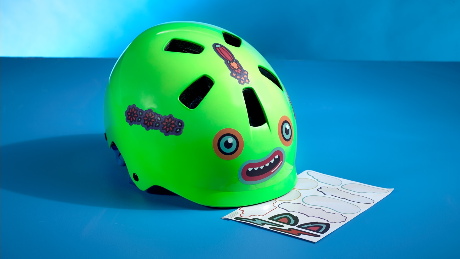 Děti si mohou svou přilbu parádně upravit s přiloženou sadou nálepek.