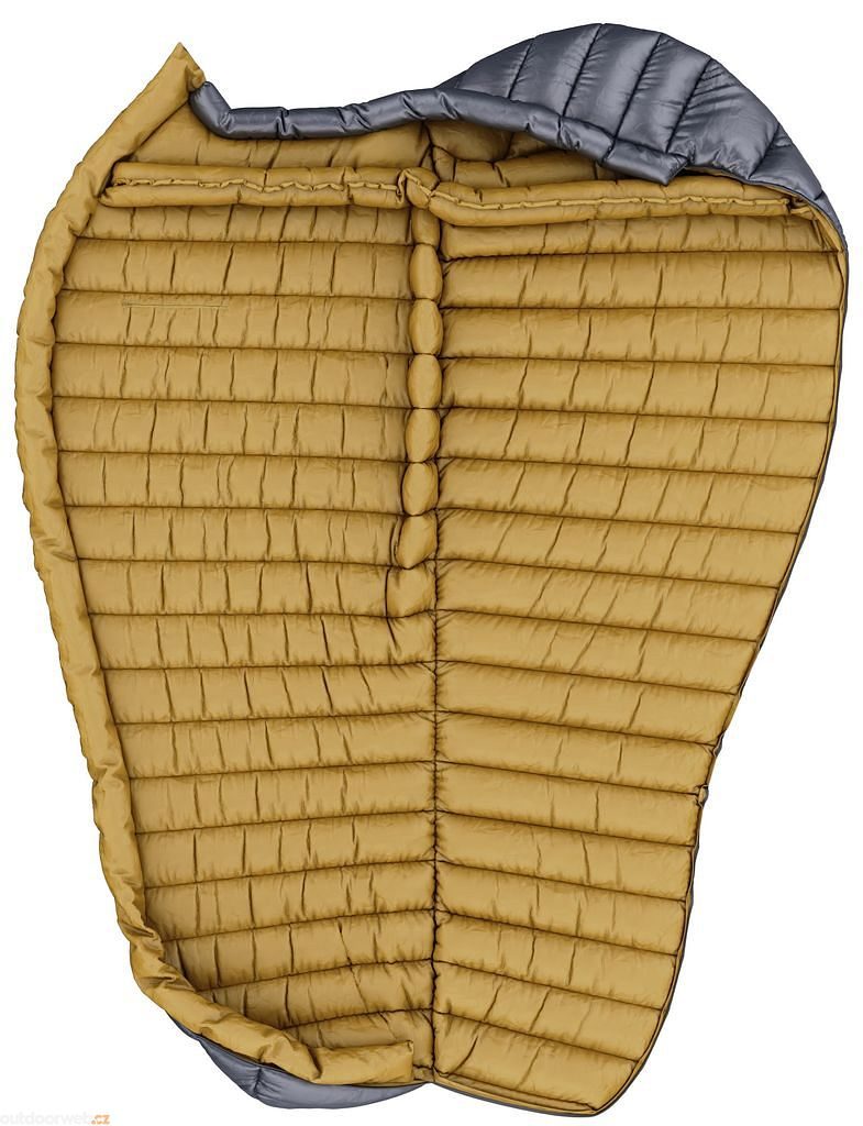 Výplň tvoří kvalitní evropské husí peří - 750 cuin, vrchní materiál je prodyšný ripstopový 20D Nylon (s ochranou proti protržení) s úpravou DWR (Durable Water Repellent), díky které je látka vodoodpudivá. Propracovaná konstrukce komorového plnění zajistí komfortní spánek i ve vysokých stupních mrazu.