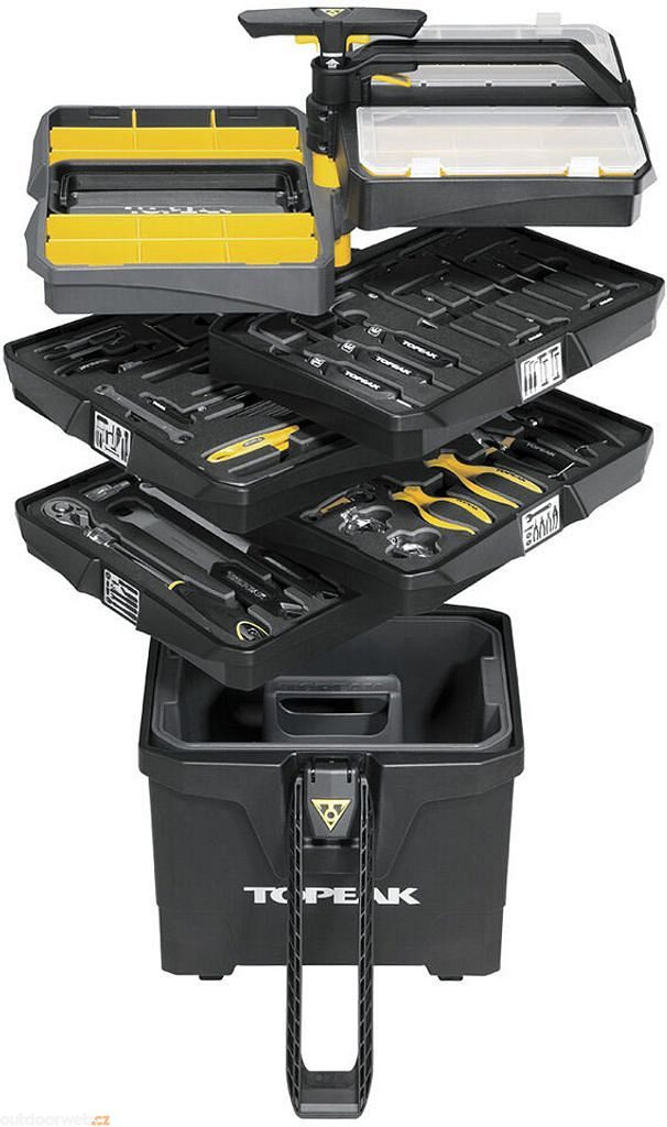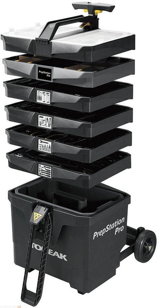 Profesionální mobilní servisní stanice, která vám přinese řád a efektivitu do vašeho cyklistického servisu. S 55 propracovanými nástroji a 85 funkcemi máte vše, co potřebujete, vždy po ruce. Stanice se snadno přemisťuje na robustních 5" kolečkách a lze ji vysunout, aby byla při práci maximálně stabilní. Inteligentní design s výsuvným madlem a přihrádkami vám umožňuje během vteřin najít přesně ten nástroj, který zrovna potřebujete.