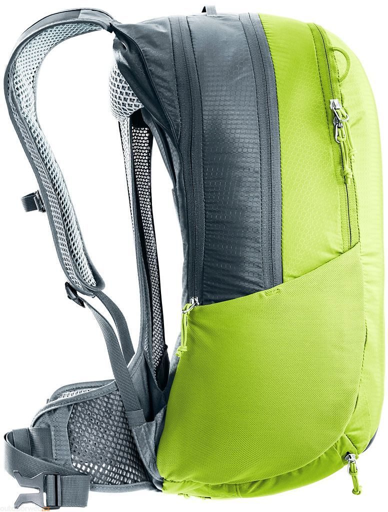 - Zádový systém deuter Aircomfort, navržený speciálně pro cyklistiku, se síťovaným zádovým panelem rozděleným uprostřed znamená, že ještě menší část batohu je v přímém kontaktu se zády a poskytuje více prostoru pro zakulacenou páteř v jízdní pozici.