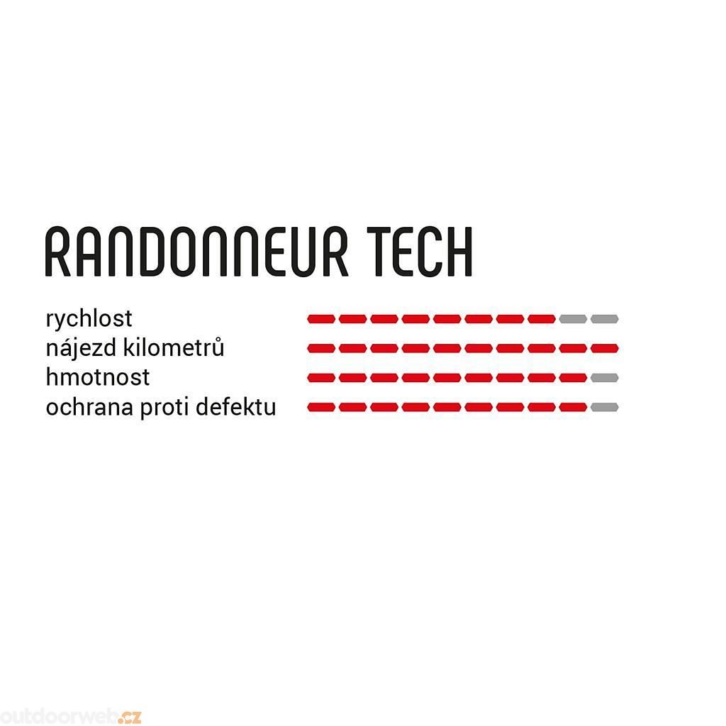 Cyklistický plášť RANDONNEUR TECH přináší kombinaci nízkého valivého odporu a vynikající ochrany proti defektům, činíce jej dokonalým výběrem pro městské dobrodružství i delší výlety v náročném terénu. Tento plášť odpovídá normě ECE-R75, což zaručuje jeho odolnost pro použití na elektrokolech.