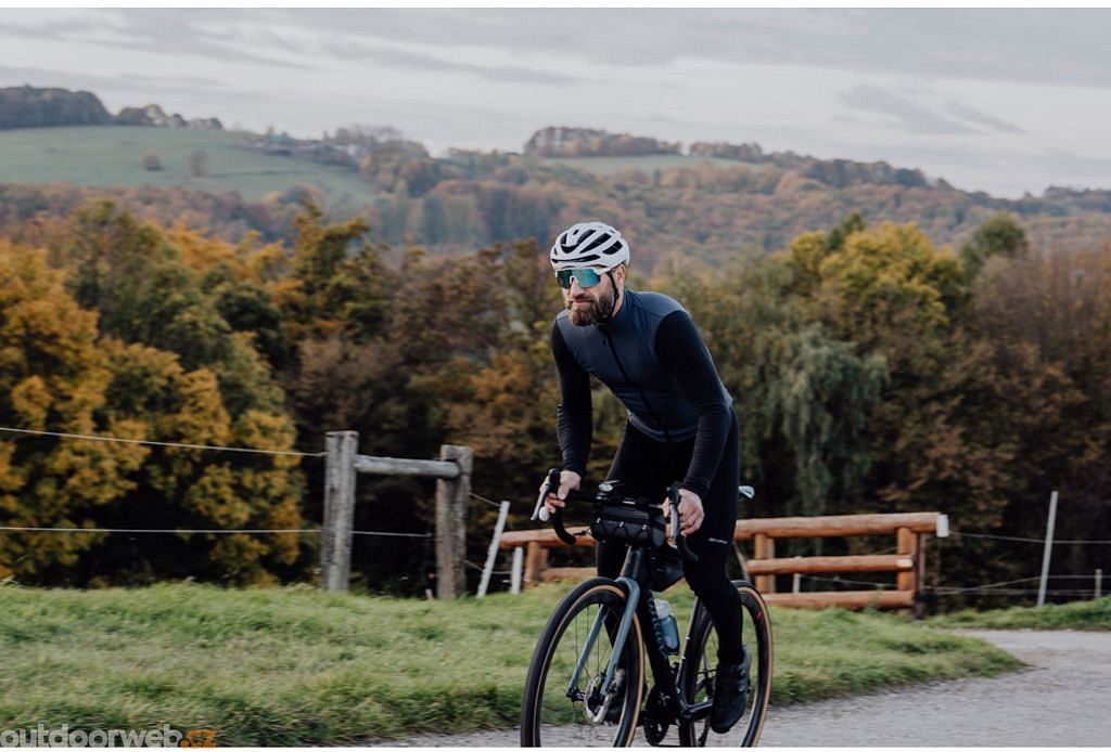 Lehké cyklistické kalhoty navržené pro chladnější dny. Kombinují funkční neprofukový přední panel s měkkým fleecovým zadním panelem, který zajišťuje dokonalý komfort při jízdě v teplotách od 0 °C do +10 °C. Reflexní prvky zvyšují vaši viditelnost, zatímco praktická kapsa na zadní straně na bedrech je ideální pro uložení malých předmětů. Ergonomické elastické šráky se síťovinou na zadní části zajišťují maximální prodyšnost a svobodu pohybu.