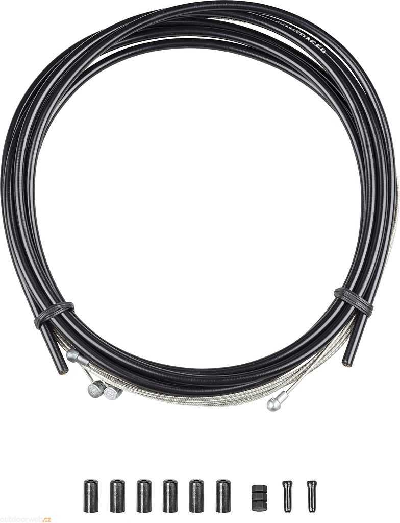 Sada obsahuje namazaný kryt, předem natažená lanka z nerezové oceli, koncovky, chrániče rámu lanek a koncovky lanek pro přední a zadní brzdy.