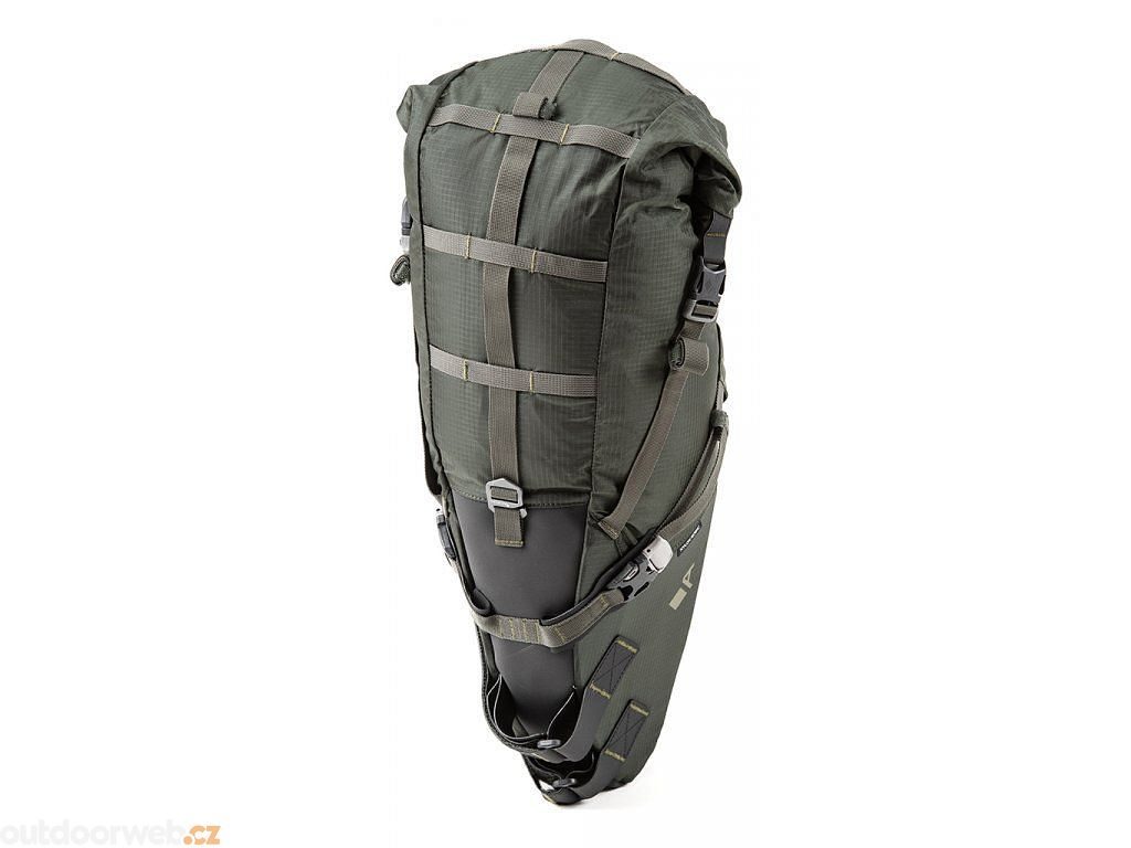 Když říkáme prostorná, myslíme tím nekompromisních 16 litrů objemu. Použitý nový hlavní materiál Nylon Robic (PU zátěr 1500 mm H20), velmi odolná a lehká tkanina. Exponovaná místa kde se brašna dotýká sedlovky a sedlových vzpěr z otěruvzdorného a nesmekavého materiálu Hypalon.