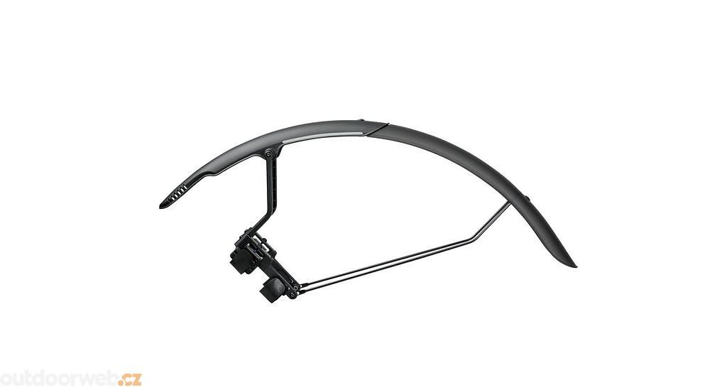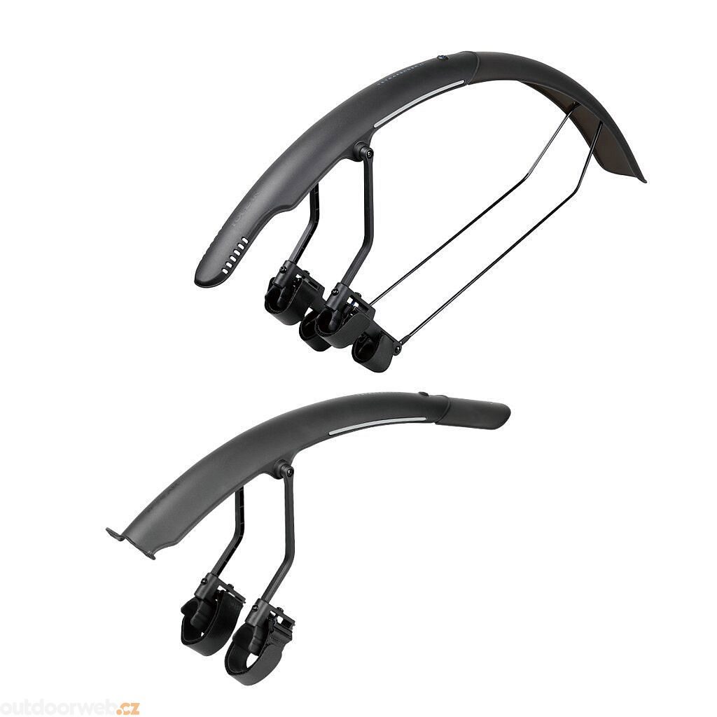 Zadní dvoubarevný blatník s rychlou, bezpečnou a jednoduchou montáží. Nastavitelné vzpěry zajišťují těsnější přilnutí k pneumatice a vynikající ochranu před blátem, zatímco vysoce leštěná spodní strana pomáhá předcházet usazování nečistot a usnadňuje čištění. Přiložené reflexní nálepky 3M zajišťují bezpečnost v noci.
