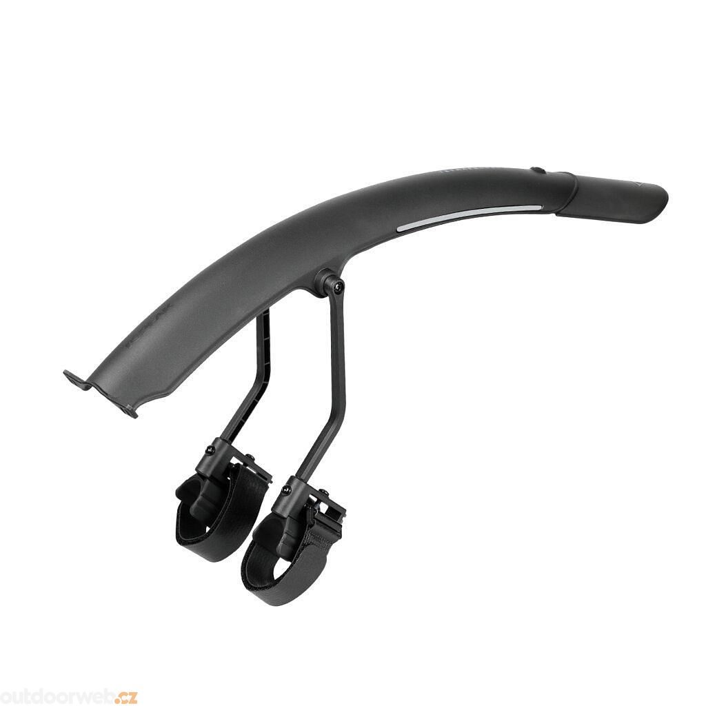 Přední dvoubarevný blatník s rychlou, bezpečnou a jednoduchou montáží. Nastavitelné vzpěry zajišťují těsnější přilnutí k pneumatice a vynikající ochranu před blátem, zatímco vysoce leštěná spodní strana pomáhá předcházet usazování nečistot a usnadňuje čištění. Přiložené reflexní nálepky 3M zajišťují bezpečnost v noci.