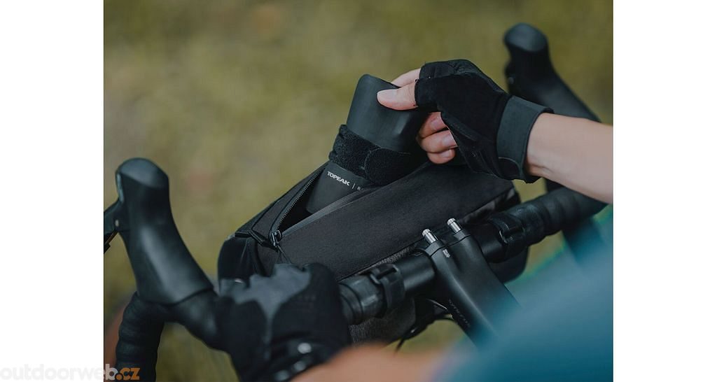 Topeak brašna na řídítka válcovitého tvaru se zipem po celé šíři brašny a postranními síťovanými kapsičkami pro jednoduchou přístupnost, ať už k vašemu snacku, peněžence nebo telefonu.