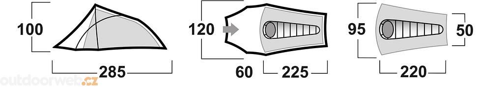 Konstrukce: dvouplášťový samonosný stan s vnější konstrukcí