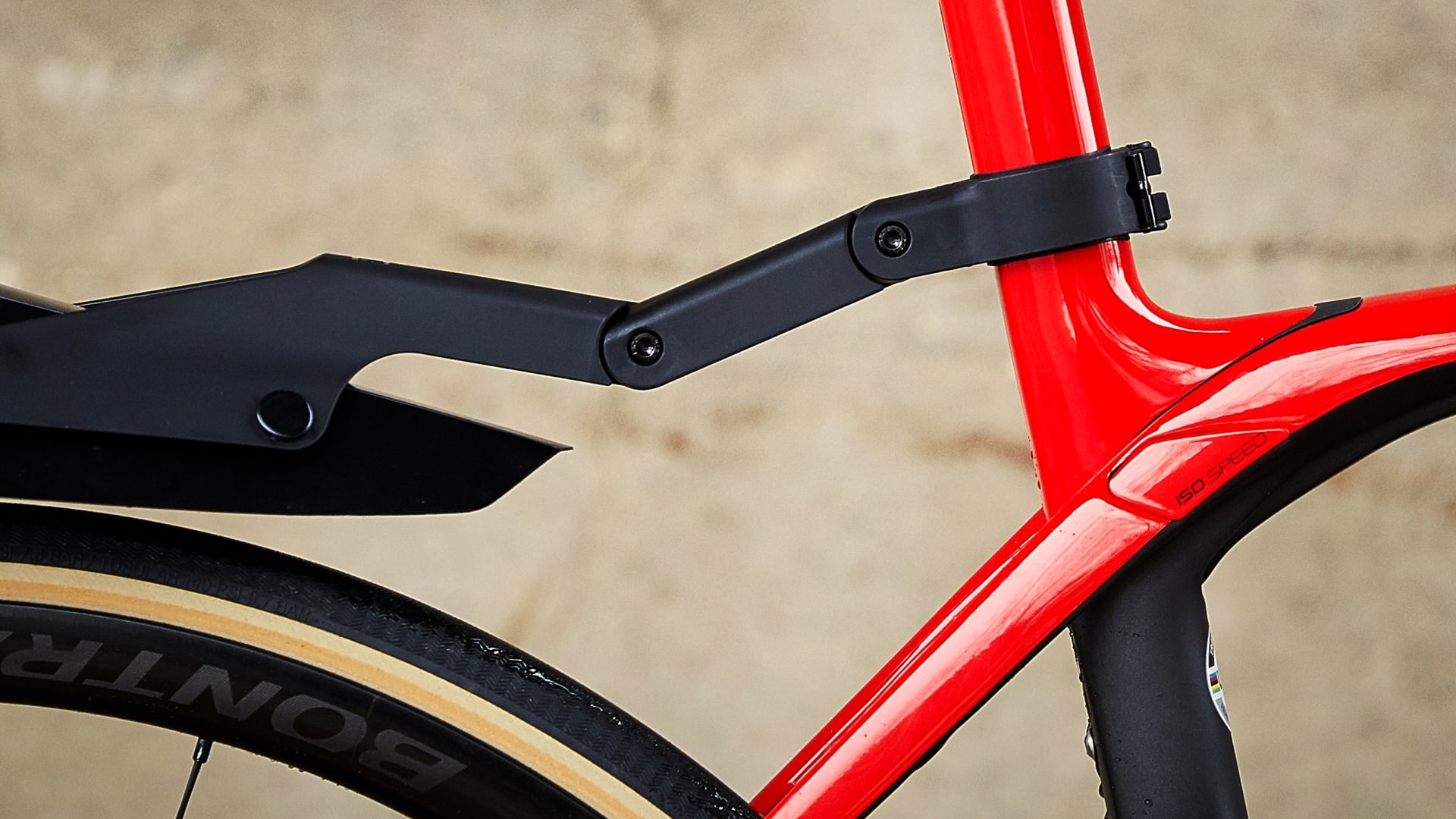 Zadní blatník je vybaven dílem k nastavení úhlu pro optimální krytí. Vyhovuje tak široké řadě designů rámů a geometrií.