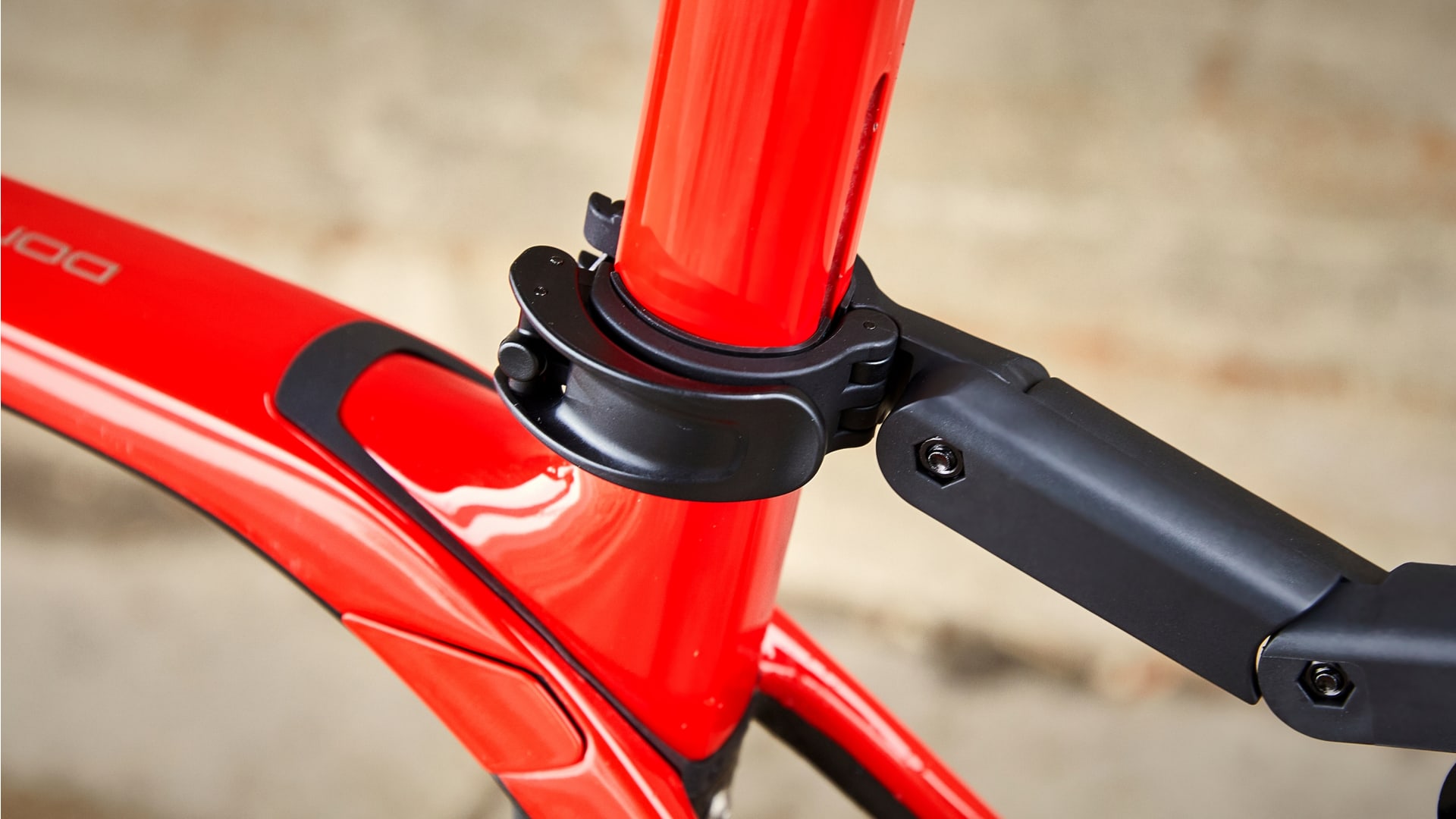 Velká objímka zadního blatníku zaručuje kompatibilitu s masivní sedlovkou. Pojme úzké sedlovky od průměru 22,2 mm až po sedlové nástavce Trek o průměru 35 mm.